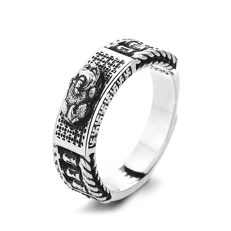 Shaped with traditional Chinese totems and replicating ancient patterns, it integrates the Zen essence of Chinese scholarship, embodying 'warding off evil and encompassing wisdom.' This is a new Chinese-style retro silver ring, fully showcasing the powerful and auspicious charm of Eastern mystical culture.